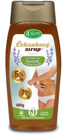 4Slim Čekankový sirup Originál je sladidlo nové generace, které se vyrábí unikátní patentovanou metodou z kořene čekanky. Obsahuje vysoký podíl extraktu z kořene čekanky, který je přirozeným zdrojem vlákniny, a vyniká glykemickým indexem menším než 5. Ve složení najdeš minimálně 98 % extraktu z kořene čekanky. Produkt neobsahuje tuky, lepek, laktózu, konzervanty ani přidané cukry a přesto má příjemně sladkou chuť a medovou konzistenci.
