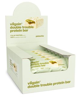 Vilgain Double Trouble Protein Bar ⁠–⁠ dvouvrstvá oříšková tyčinka zalitá čokoládou, 29 % kvalitních bílkovin, bez konzervantů a barviv