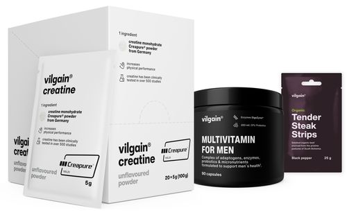 Vilgain Kreatin monohydrát s ochrannou známkou Creapure® představuje čistý, koncentrovaný a dobře vstřebatelný zdroj kreatinu. Je ve formě mikronizovaného, hedvábně jemného prášku bez příchutě.