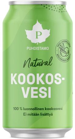 Puhdistamo Coconut Water, také známý jako energetický nápoj matky přírody je přesně to co o sobě tvrdí. 100 % přírodní kokosová voda (ve variantě s mangem ochucena o mangové pyré), nesycená a bez syntetických aditiv, jako bys rozpoltil kokos a přelil ho rovnou do plechovky.