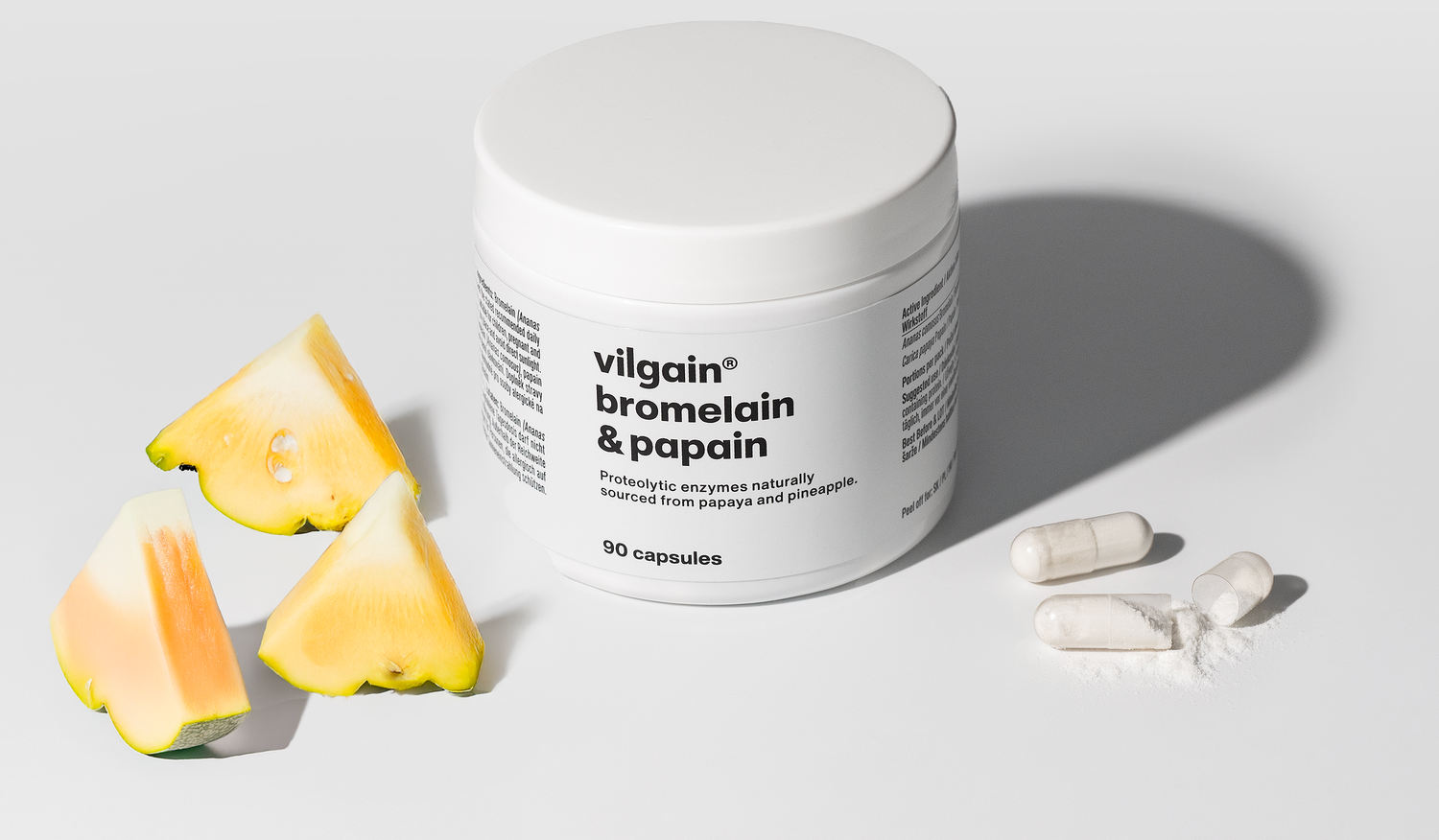 Bromelain a Papain jsou enzymy získávané z ovoce, které přirozeně štěpí bílkoviny na aminokyseliny. Pokud máš problém s trávením mléčných, masných či jiných bílkovin, pak je tento suplement právě pro tebe.