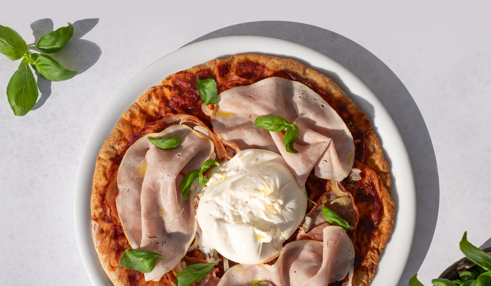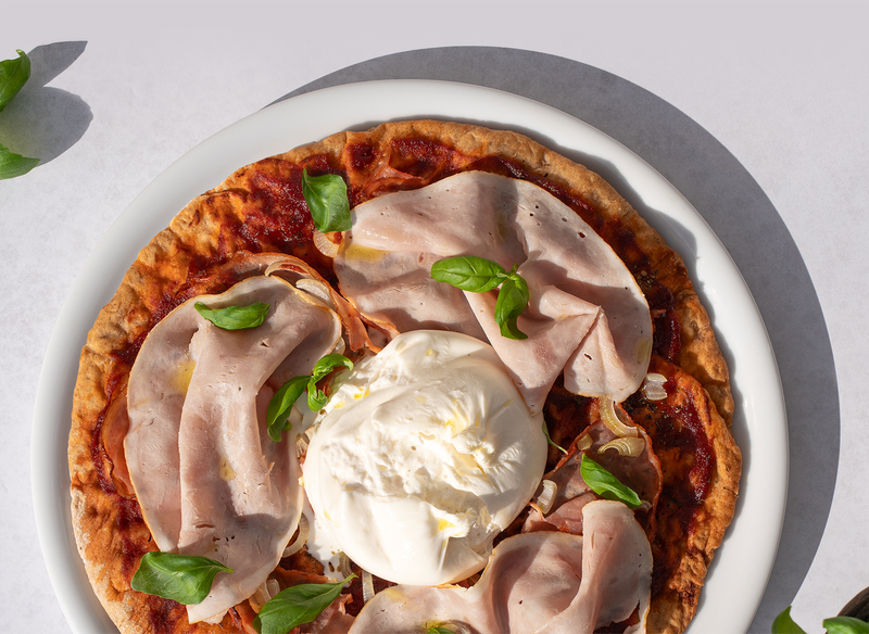 - Přidej základ, šunku, rajčata, strouhaný sýr nebo jiné pochoutky.