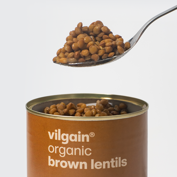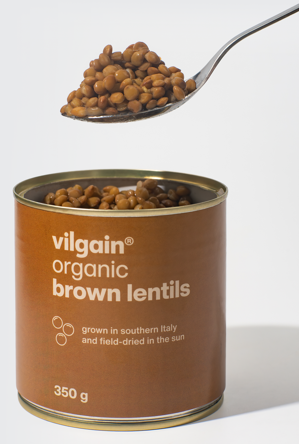 Vilgain Hnědá čočka v nálevu BIO – pouze ze 3 ingrediencí, hotová příloha k okamžitému použití, bez konzervantů a umělých aditiv
