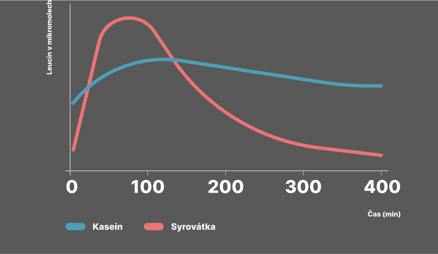 | Rychlejší nástup než casein a pomalejší pokles než syrovátka | Rychlejší nástup než casein a pomalejší pokles než syrovátka | Pozvolné, po dobu několika hodin | Rychlý nástup a rychlý pokles |