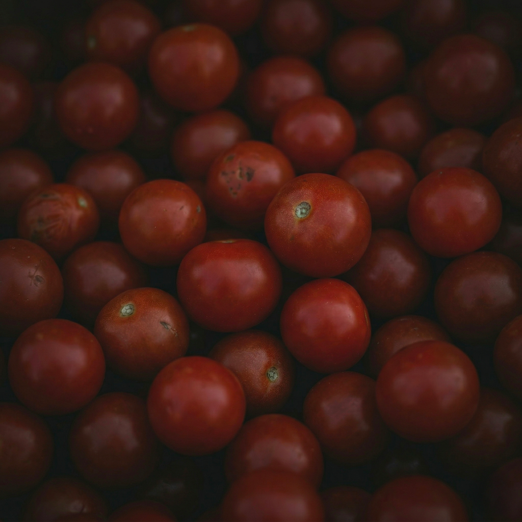 Cherry rajčata jsou pěstována lokálně na sicilských polích a ručně sbírána