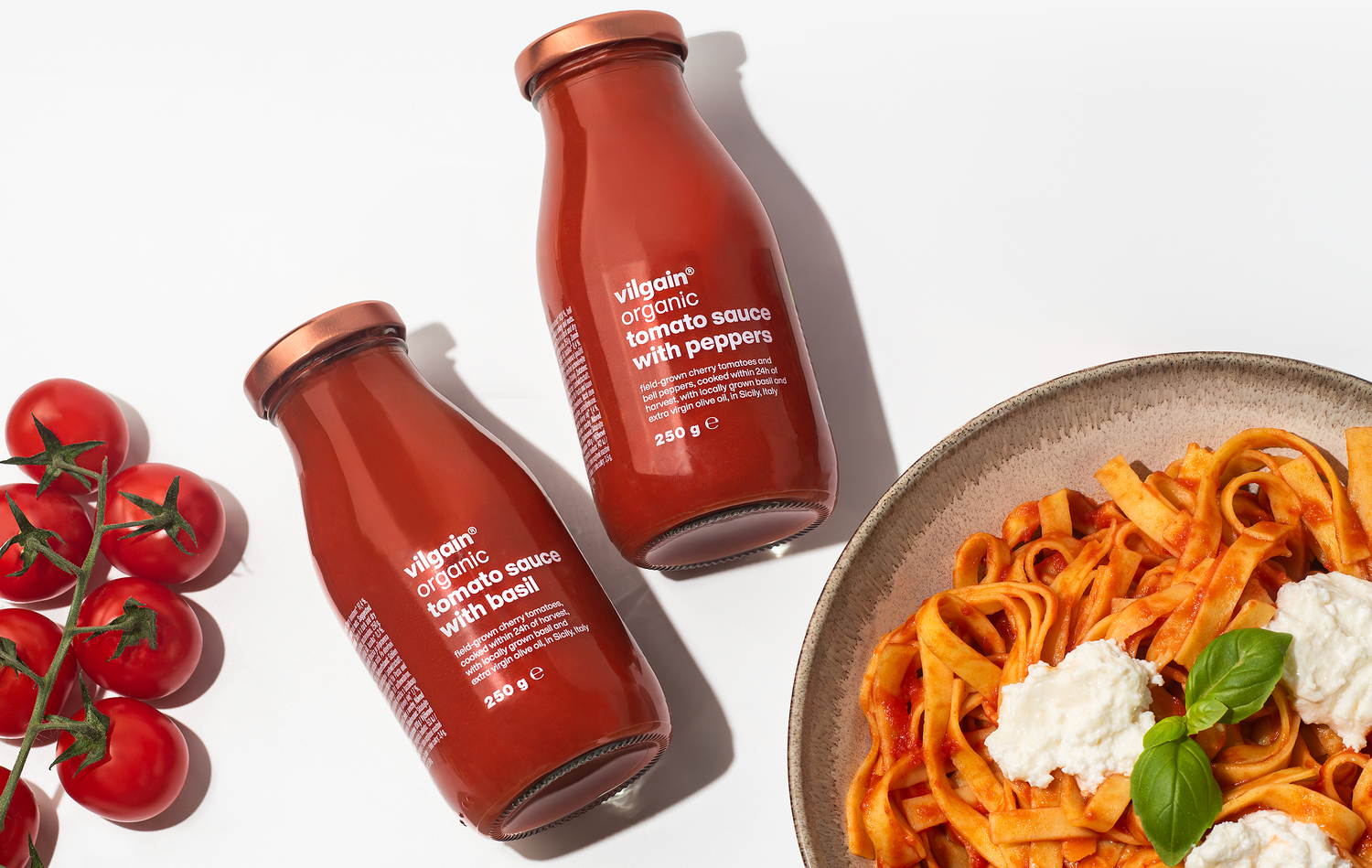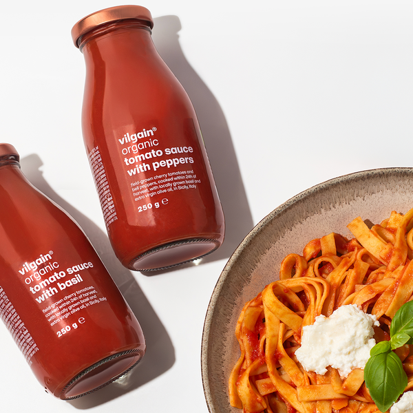 Vilgain Rajčatová omáčka BIO – plná chuť cherry rajčat, s extra panenským olivovým olejem, bez konzervantů